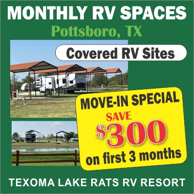 When you stay with us at Texoma Lake Rats RV Resort, you can choose from pull-thru and back-in sites.